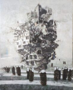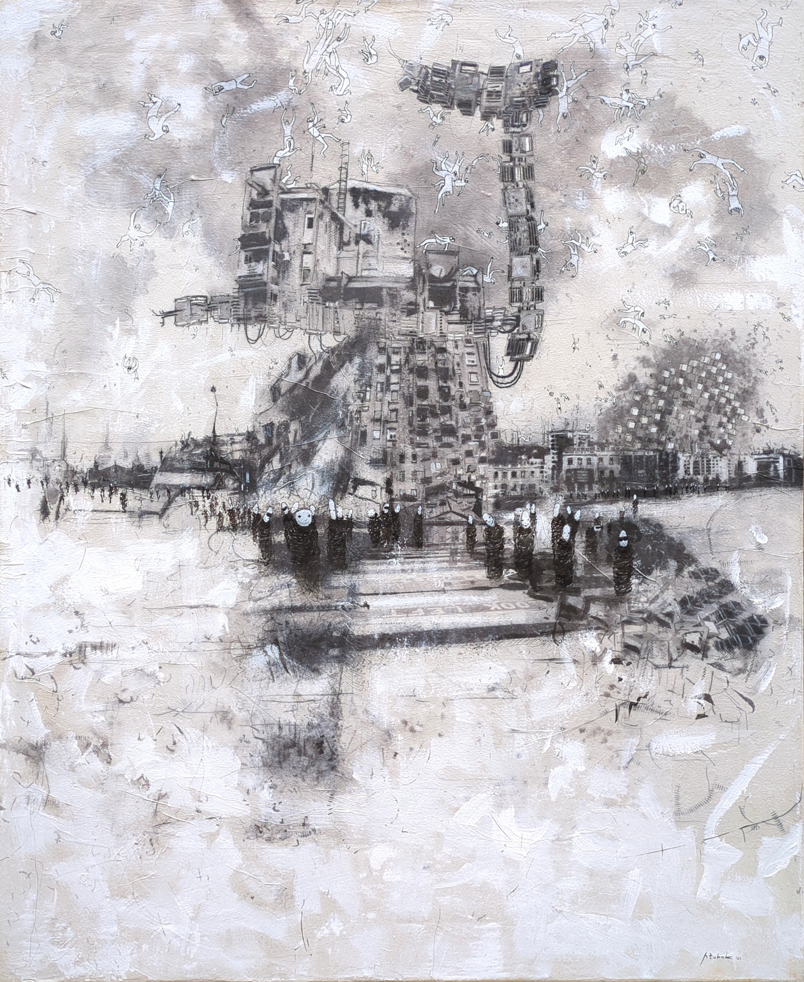 Sky over the city, collab with Dunja Zubak 100x80cm, 2023.